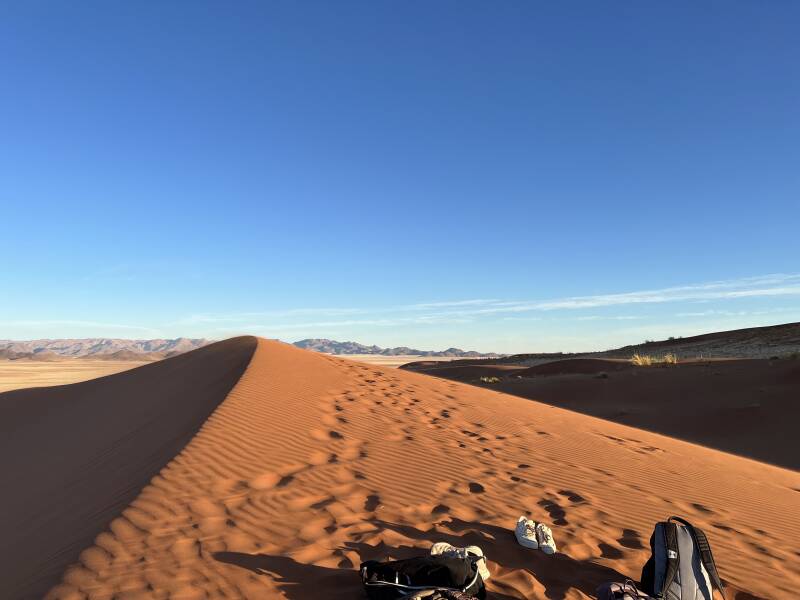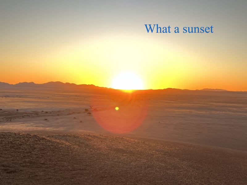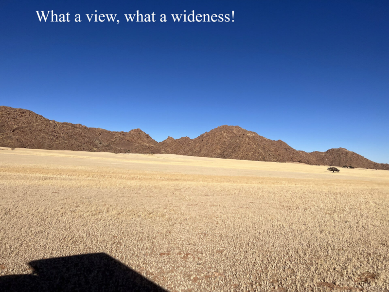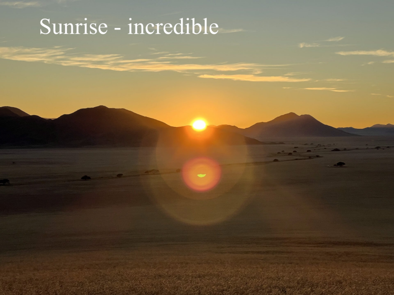 Die Woche war sehr abwechslungsreich. Viele hikes, Zeit für uns und auch Spass war dabei. Die Gruppe, wir waren nur 7 Vols, war toll. Die Lodge, die zum Camp gehört besticht durch eine einmalige Lage. Das Personal, sowohl im Camp als auch in der Lodge, ist schlicht genial. Kanaan ist jederzeit eine Reise wert. Wer sich vornimmt, Namibia zu bereisen, sollte die Wüste, und im Speziellen, Kanaan nicht auslassen. Ich fand hier noch einmal die Ruhe und Gelassenheit, die ich für meine Reise und meine Arbeiten gesucht habe. Ich konnte noch einmal richtig "runterfahren". Yes, I'm feeling soooo good! It should never end.