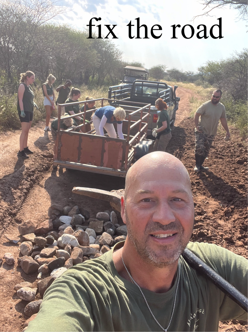 We also worked at the farmstead again and fixed a part of a damaged road and made over 450 seedballs. These balls are designed to lprovide more grass for the herbivores. At the end of the week, we placed them at a special spot. Hopefully it will works and the grass is growing. We also had some time to relax and spent one afternoon at the lodge, had a nice pizzanight and of course the braii at friday.
